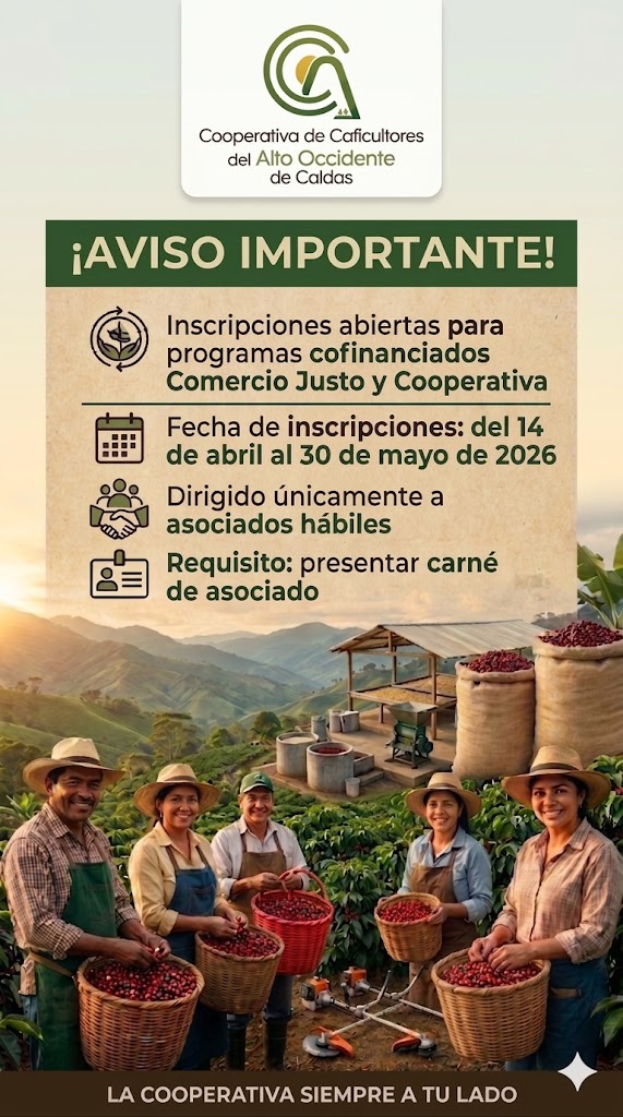 La Cooperativa de Caficultores con el apoyo de los Delegados y los Asociados, se encuentra efectuando el Diagnóstico de Necesidades de Desarrollo con la finalidad de identificarlas , priorizar y proponer programas y servicios para la ejecución del Plan de Desarrollo 2026.En esta etapa destacamos l...